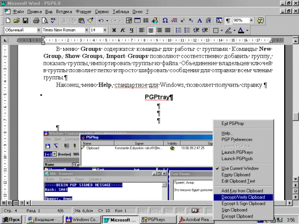 Освоение средств программной системы PGP, предназначенных:
